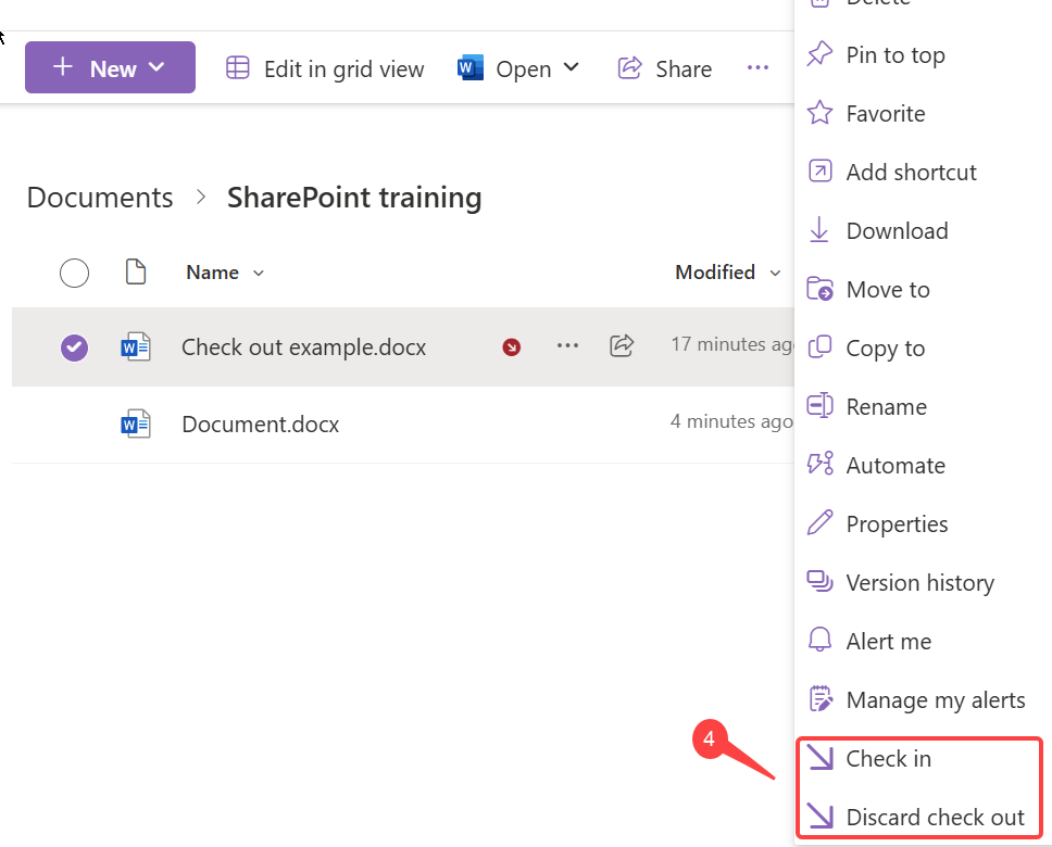 2. Select Check in – if you don’t want to save changes you’ve made, select Discard Check out