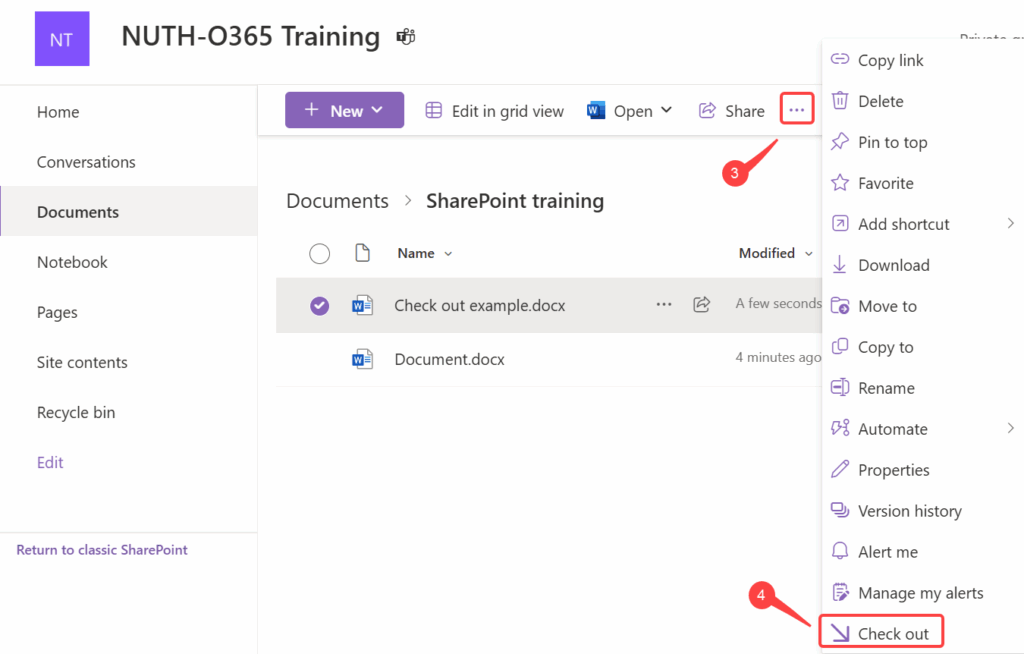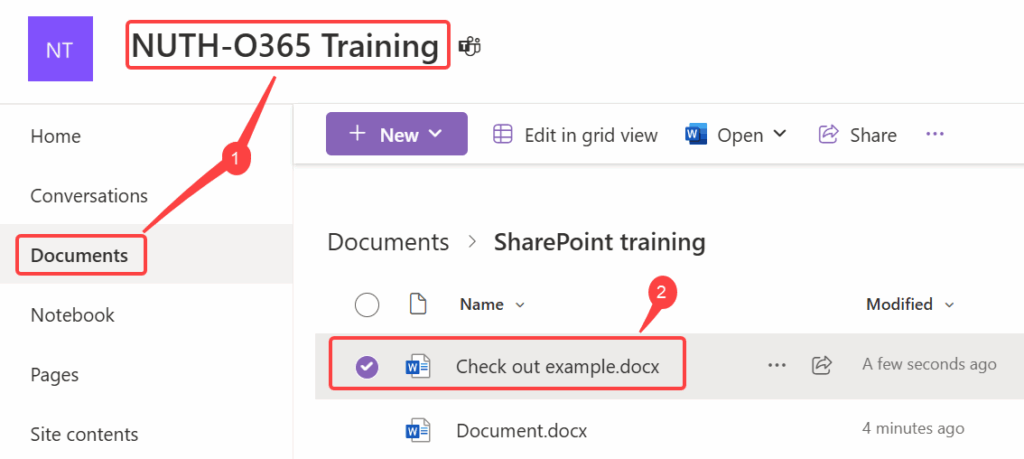 1. Go to the Team site then click Documents