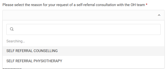 To access the self-referral portal please visit the Occupational Health page on the intranet and select Self-referral information in the menu.