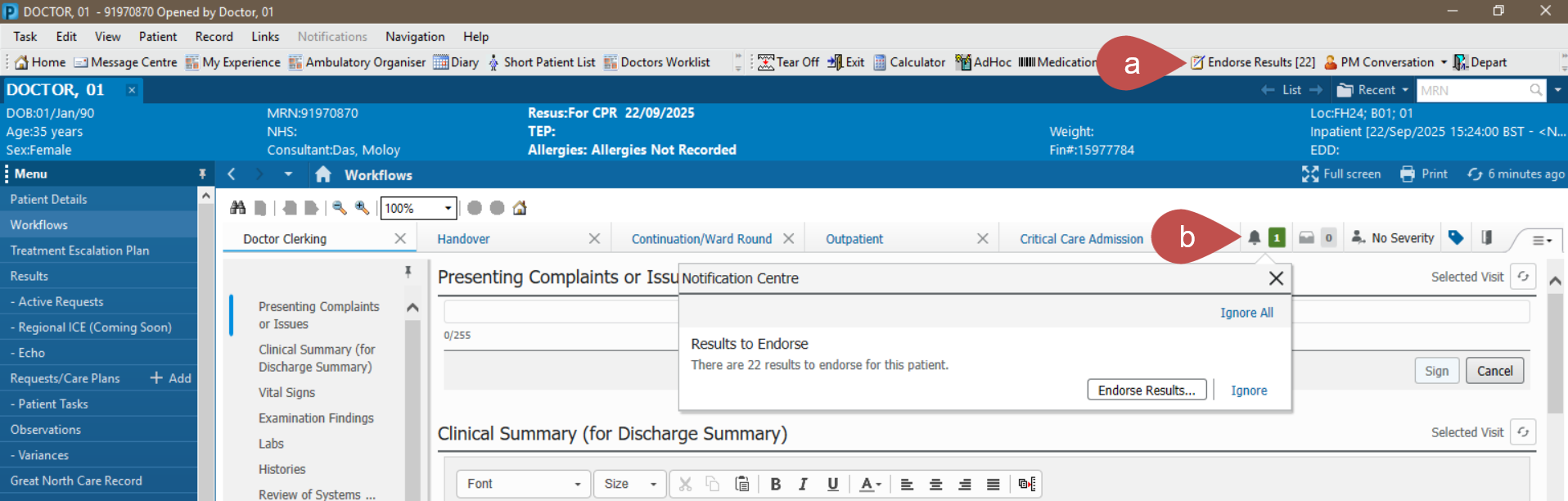 in the main grey menu bar at the top of the screen. (The number in between the brackets indicates how many results need endorsing for this particular patient.)