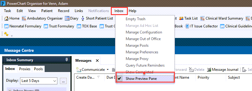 Please note: when you view results in the Preview Pane, you will not have the endorse options. To endorse a result from the preview pane, double-click on the result. For this reason It is not recommended to use the preview function as you will not be able to directly endorse. It is better to open the first message and then use OK and Next to endorse one result after the after.