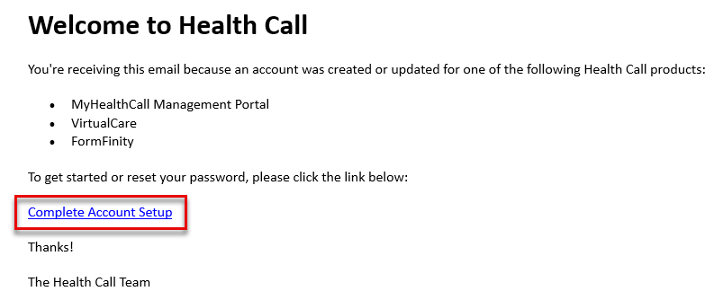 1. In the email, click the Complete Account Setup link: