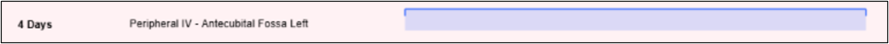 The coloured section has a border which wraps around the bar at the time when insertion have been documented.  The border wraps around at the end to demonstrate when the removal has been documented.  If the “wrap around” is not visible at the start, then it was started before the time currently shown.  If the “wrap around” is not visible at the end, then the device is still inserted in the patient.