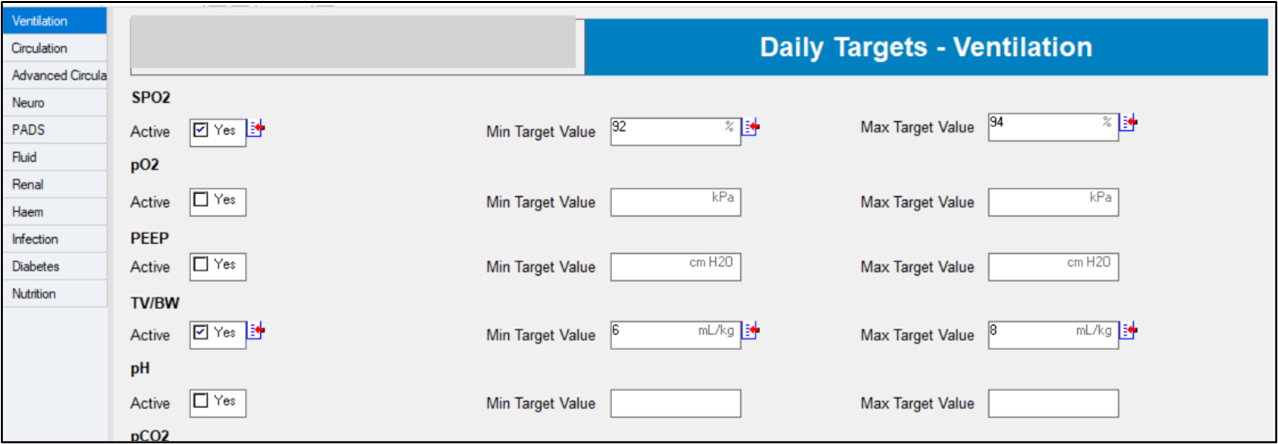 Targets are set and removed using the Critical Care Daily Targets AdHoc form.