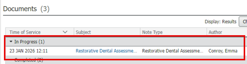 - Once saved the form will display in the Documents section under the In Progress heading.