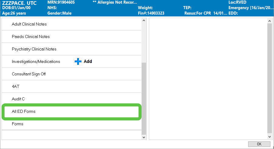 When requested to completed a specialist review in either ED or UTC the specialist will need to document in the “Specialist Review in ED” form.  Depending on the software used, this is accessed via a different route.