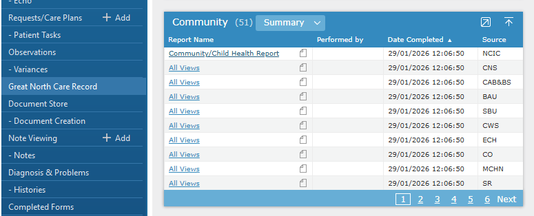 1. Select the ‘Great North Care Record’ from the left hand menu