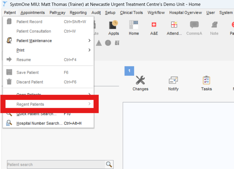 PLEASE NOTE: It is only possible to have one patient record open at a time in SystemOne.