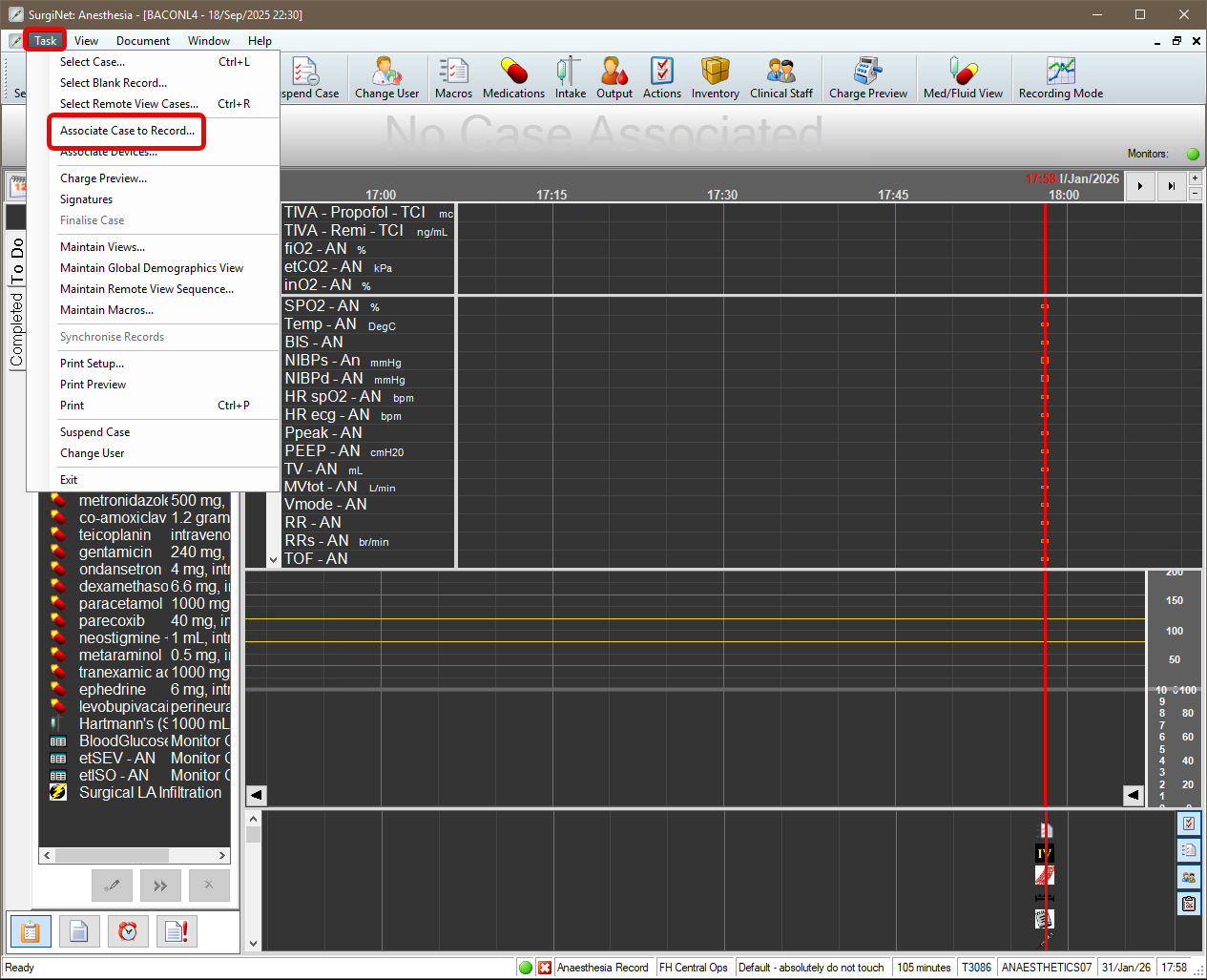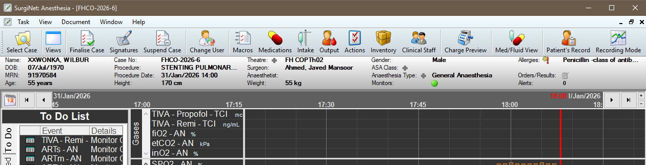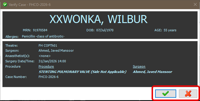 Important – Ensure the correct patient and case has been verified. Once the green tick is selected this will associate your anaesthetic record to this patient and case.