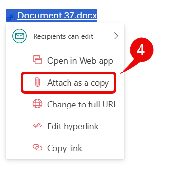1. Your file will now be attached as a copy without the web link