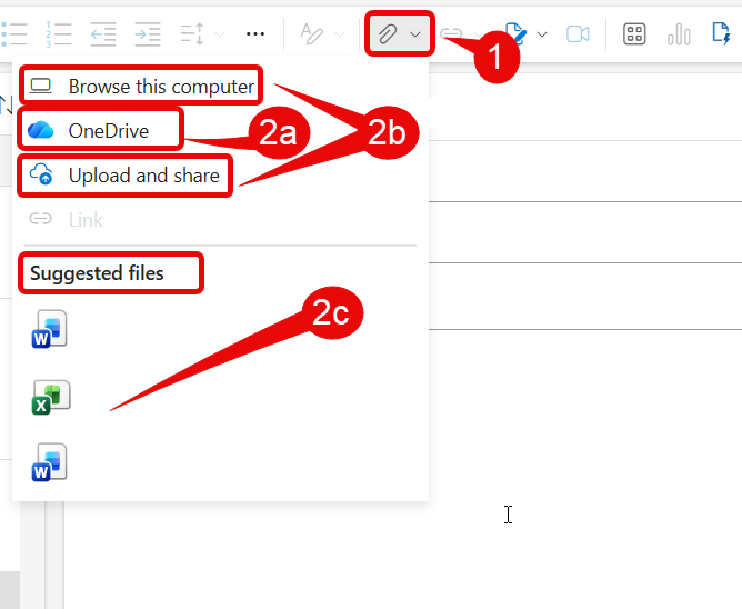 2. to attach a file from your PC or OneDrive