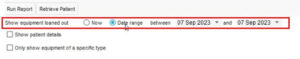 - You can choose to see patient details and to only show equipment of a specific type.