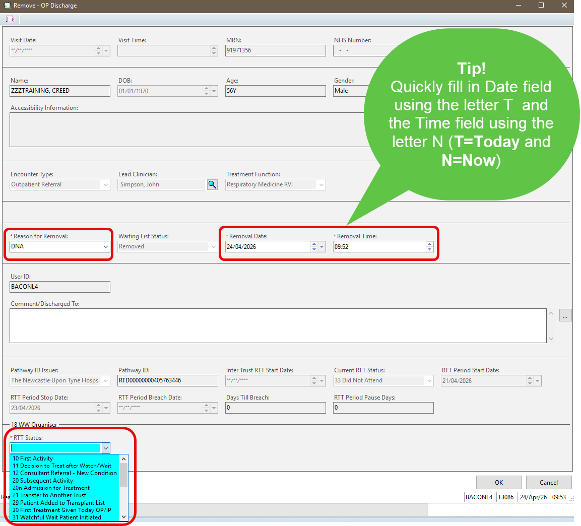 Once patients have been DNA’d, the patients need to be removed from the waiting list. Patients sit in a “deferred” status so need to be removed to prevent the waiting list becoming longer and more complex to navigate than it needs to be!