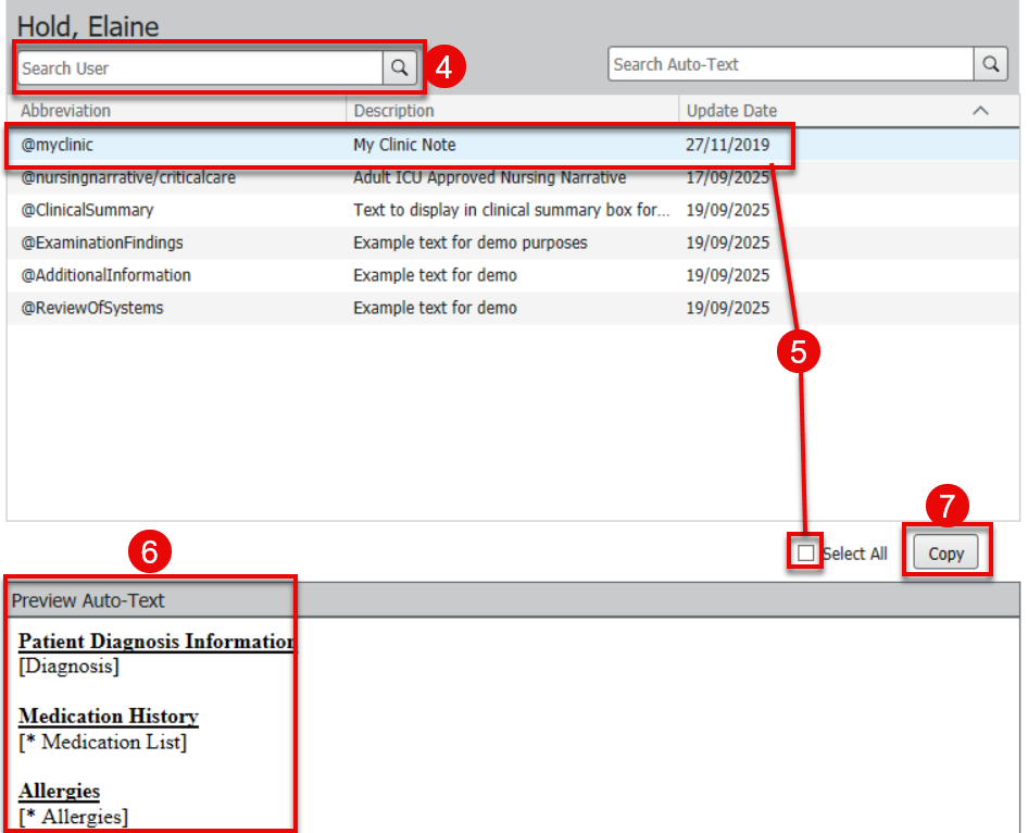 How to use the Autotext copy function to share autotexts between users in PowerChart