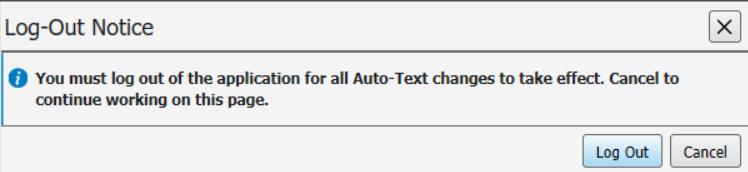 • Cancel – Select cancel if you wish to continue your PowerChart session. The autotext you copied will be available next time you log in to PowerChart.