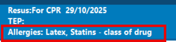 - In the patient record allergies are displays in bold text in the middle of the blue bar at the top of patient record. Click here to open a window displaying more information.