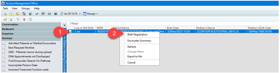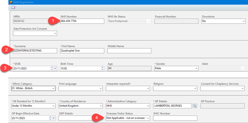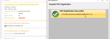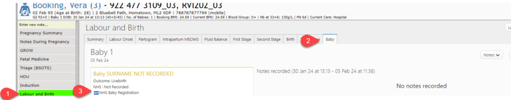 3. Then NHS Baby Registration, once selected this information is transferred to eRecord