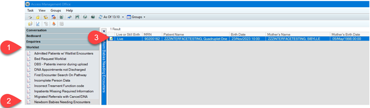 2. Double click on Newborn Babies Needing Encounters