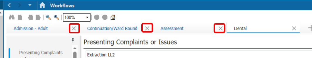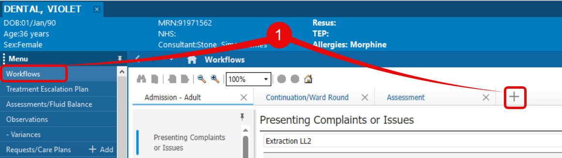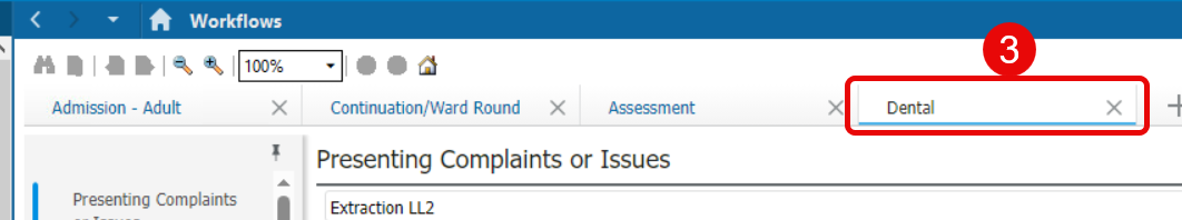 - With the patient’s dental encounter open and Workflow selected, click on the + tab to the right hand-side of available tabs.